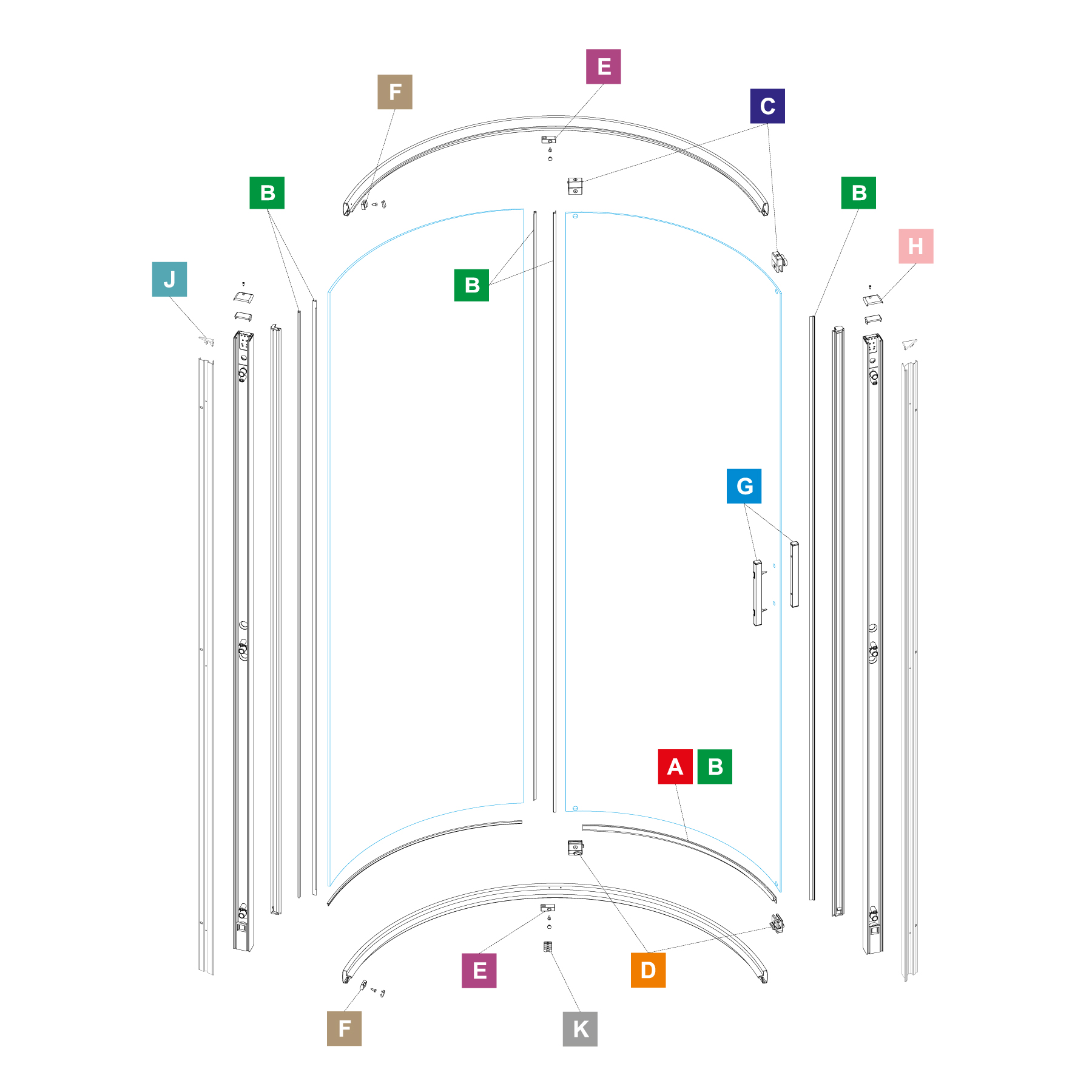 Original6 1000x810mm Offset Curved Corner Sliding Enclosures